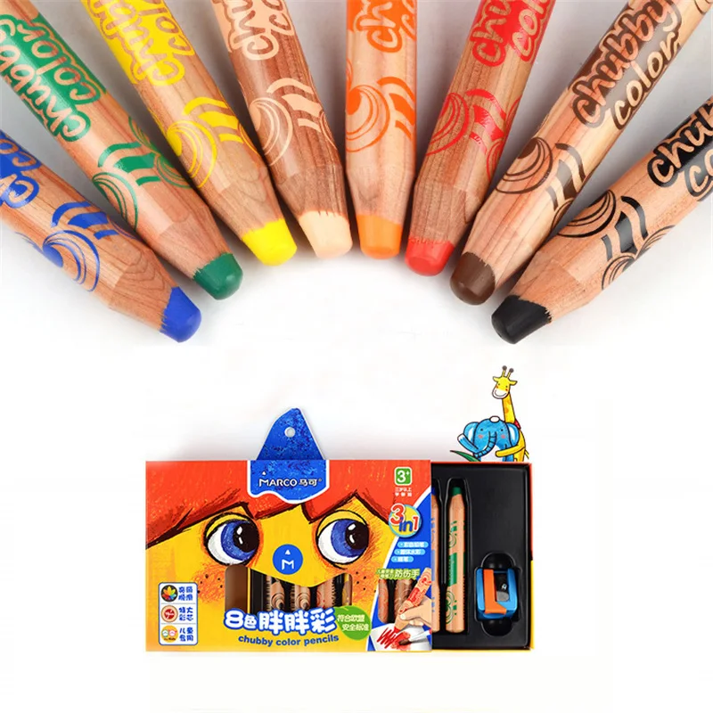 Marco 8 color stationery set fat children painting environmental protection solid color pencil crayon 3 in one
