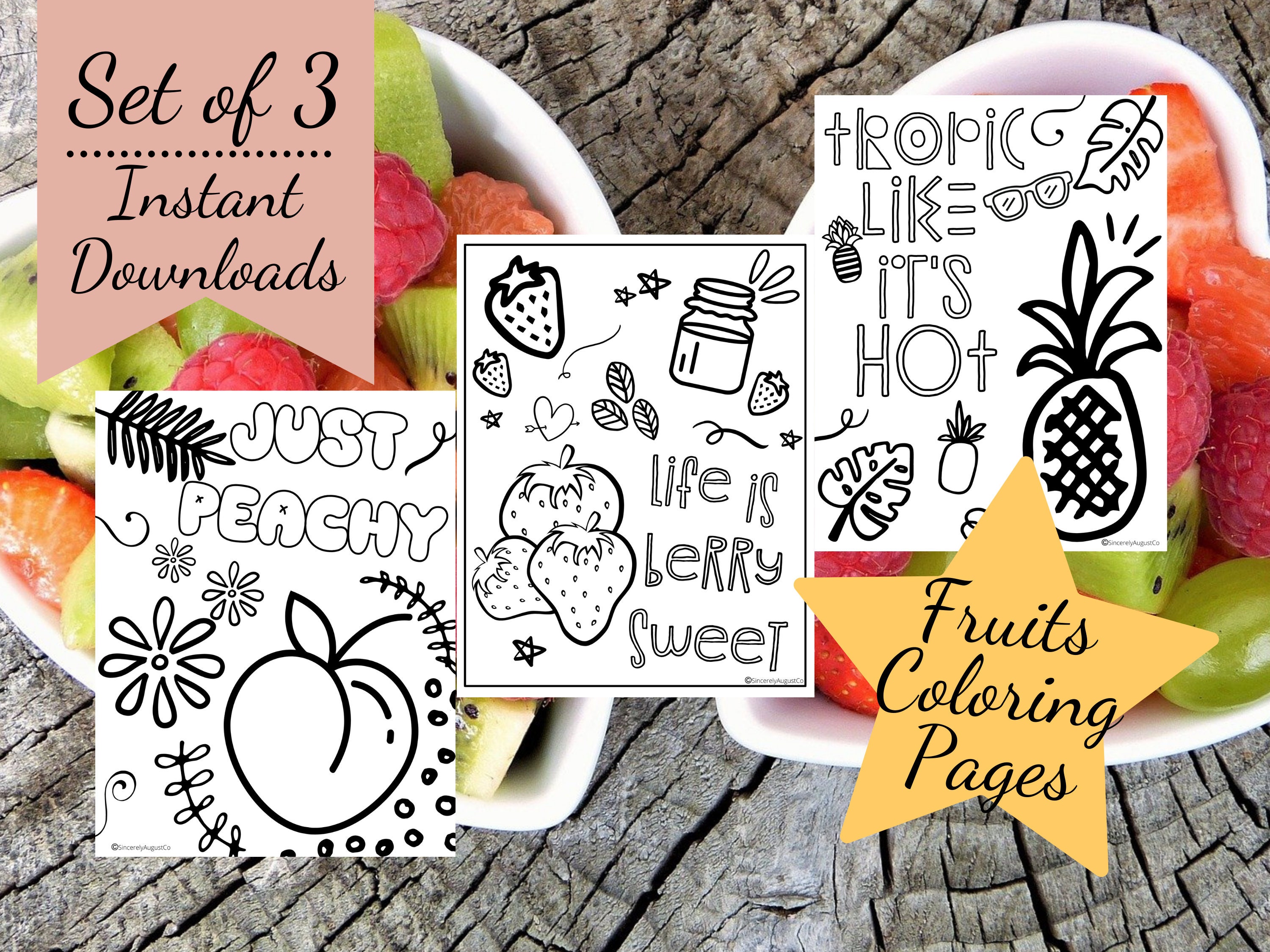 Fruits Coloring Pages Printable - Coloring Pages for Adults - Coloring Pages for Kids - Instant Download PDF